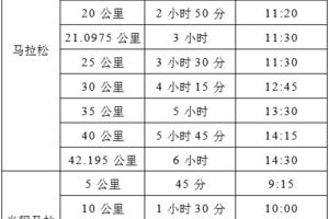 (八)关门时间以发令枪声时间计时,具体见下表(以8:30发令起跑计算)
