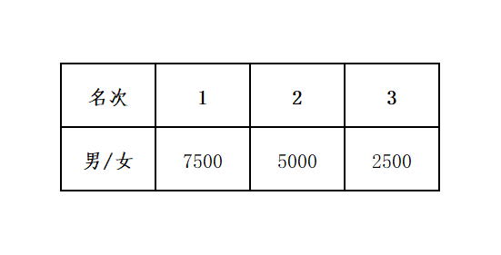 男女前3名马拉松参赛选手获得奖金和奖杯(前3名以枪声成绩为准),分别获得奖金如下表。单位:人民币。